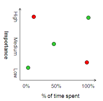The tool I suggest is a simple Importance -- Time Spent matrix, as below
